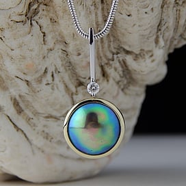 Forming over a period of three years in the pristine South Island marine environment, these aquatic gems develop lustrous iridescent colour distinctly different from any other type of pearl. Available here in jewellery designed and made in Auckland by Gallery Pacific.