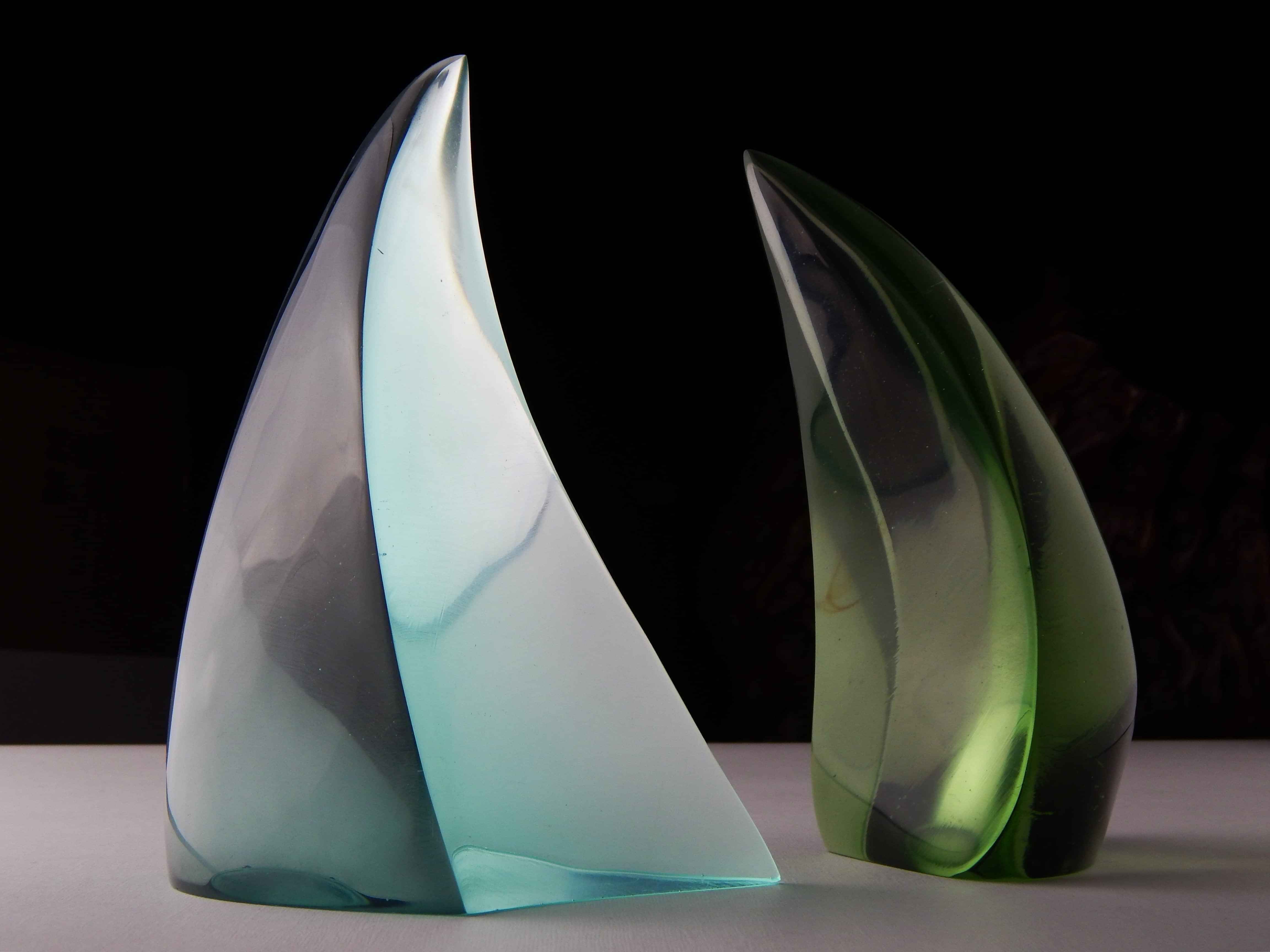 At his Auckland workshop he pursues pure sculptural forms in opaque and translucent materials, his individual pieces complimentary to each other grouped in visual dialogue.