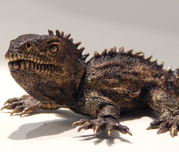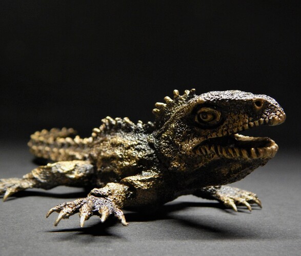 Ken Auton employs the lost wax casting process to make his bronze sculptures. He carves a wax model of his subject by hand, exactly as it should appear as a finished sculpture. Owing to the complex form of the creature he has carved, the wax model may need to be broken down into separate parts which are then cast in bronze at an Auckland foundry by a casting specialist.