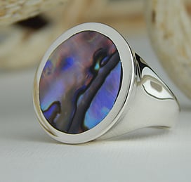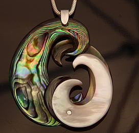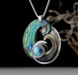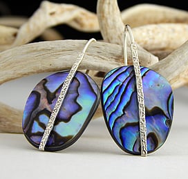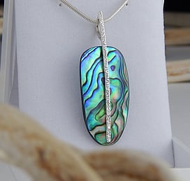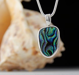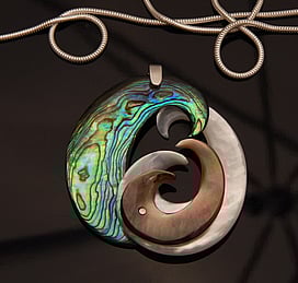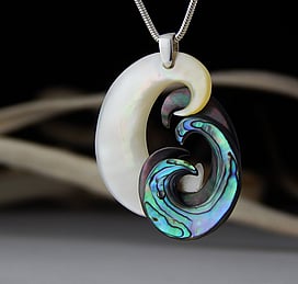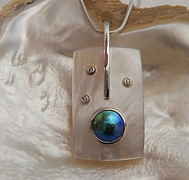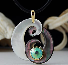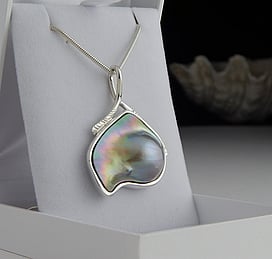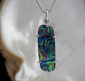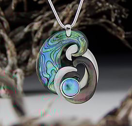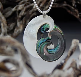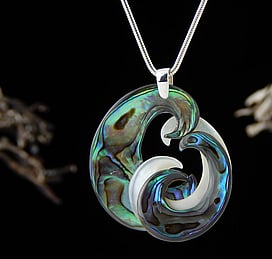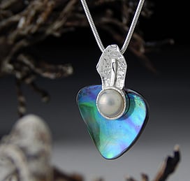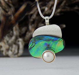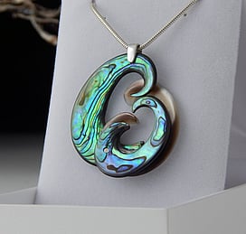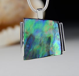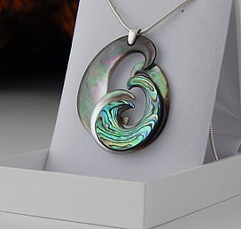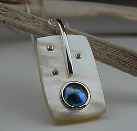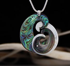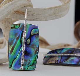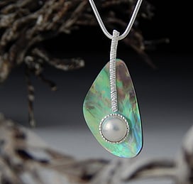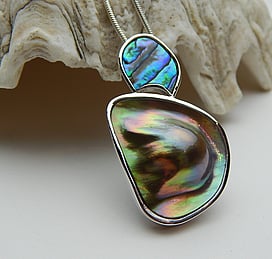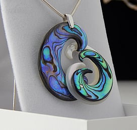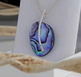 Marine Jewels in Silver is our collection of jewellery made with New Zealand Paua Shell , cultured 'Blue Pearls', and Mother of Pearl Shell. The iridescence and colour of these beautiful materials is brought to life by Auckland jewellery artists Neil Hanna and Michel Girardin, in generous sculptural designs that are evocative of the Pacific and Aotearoa New Zealand.