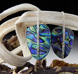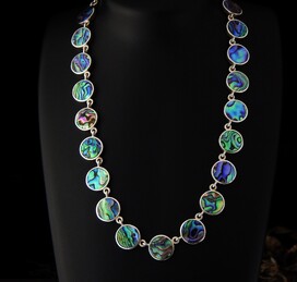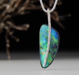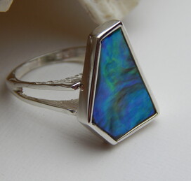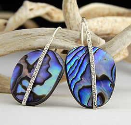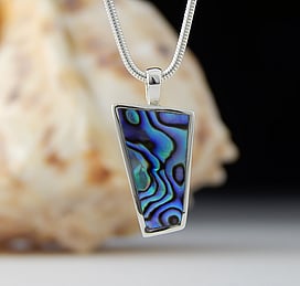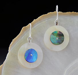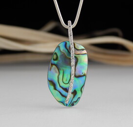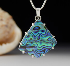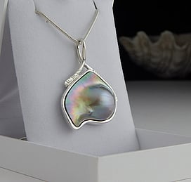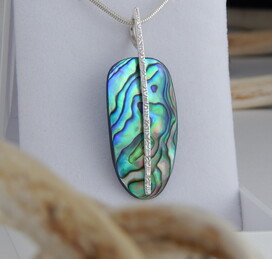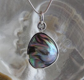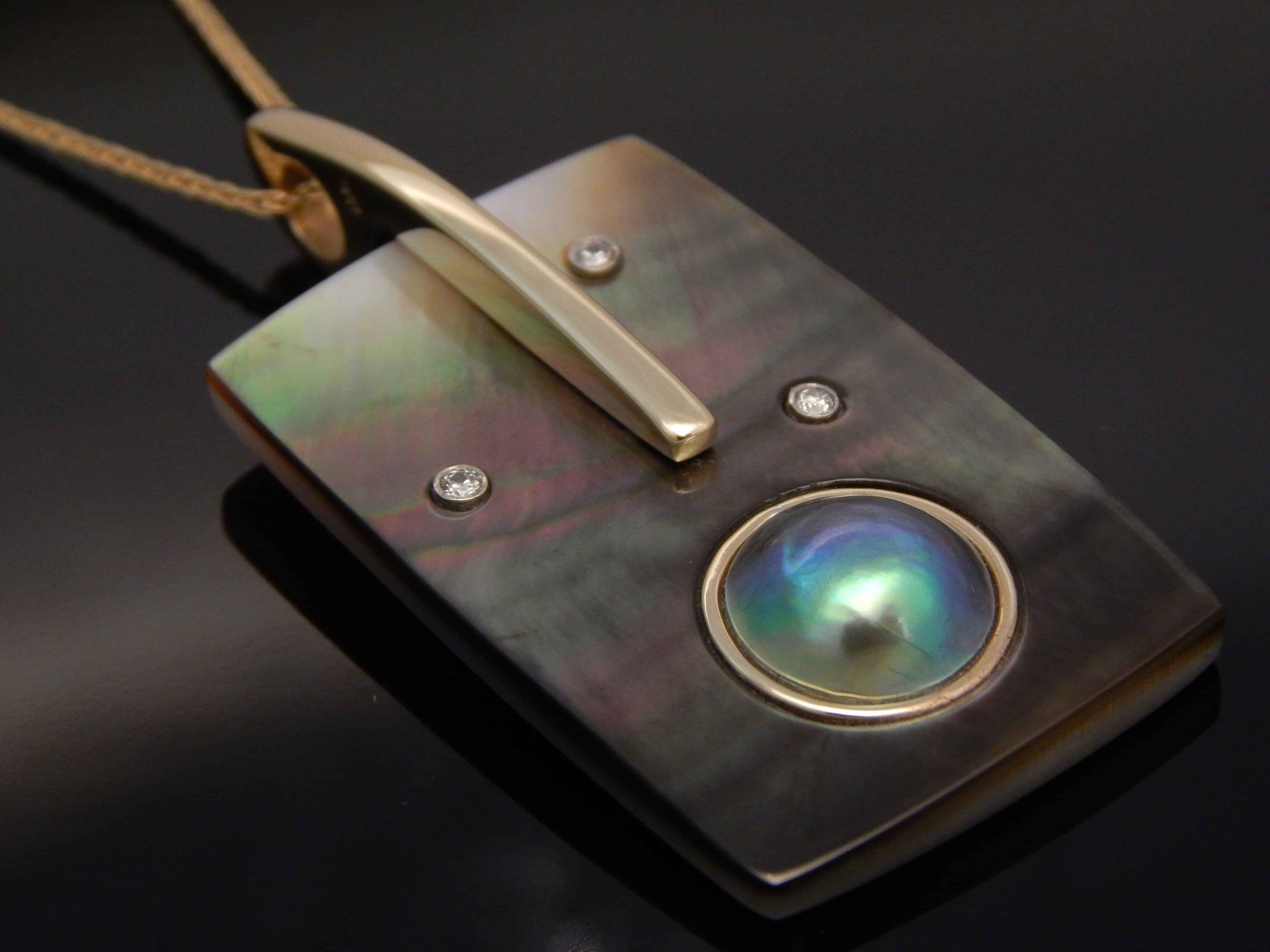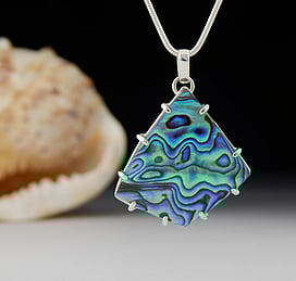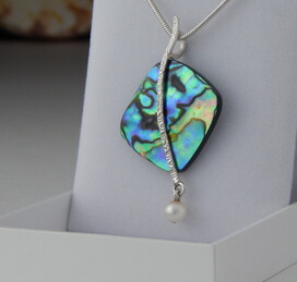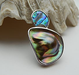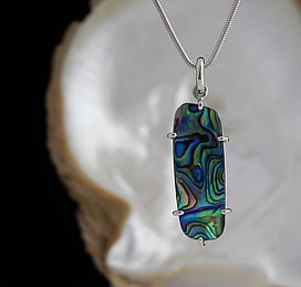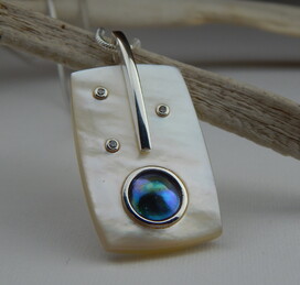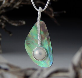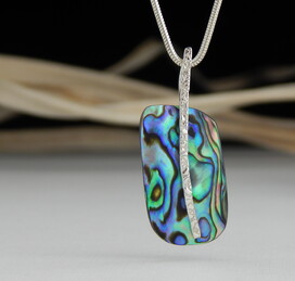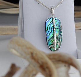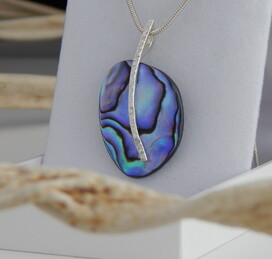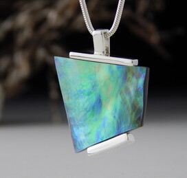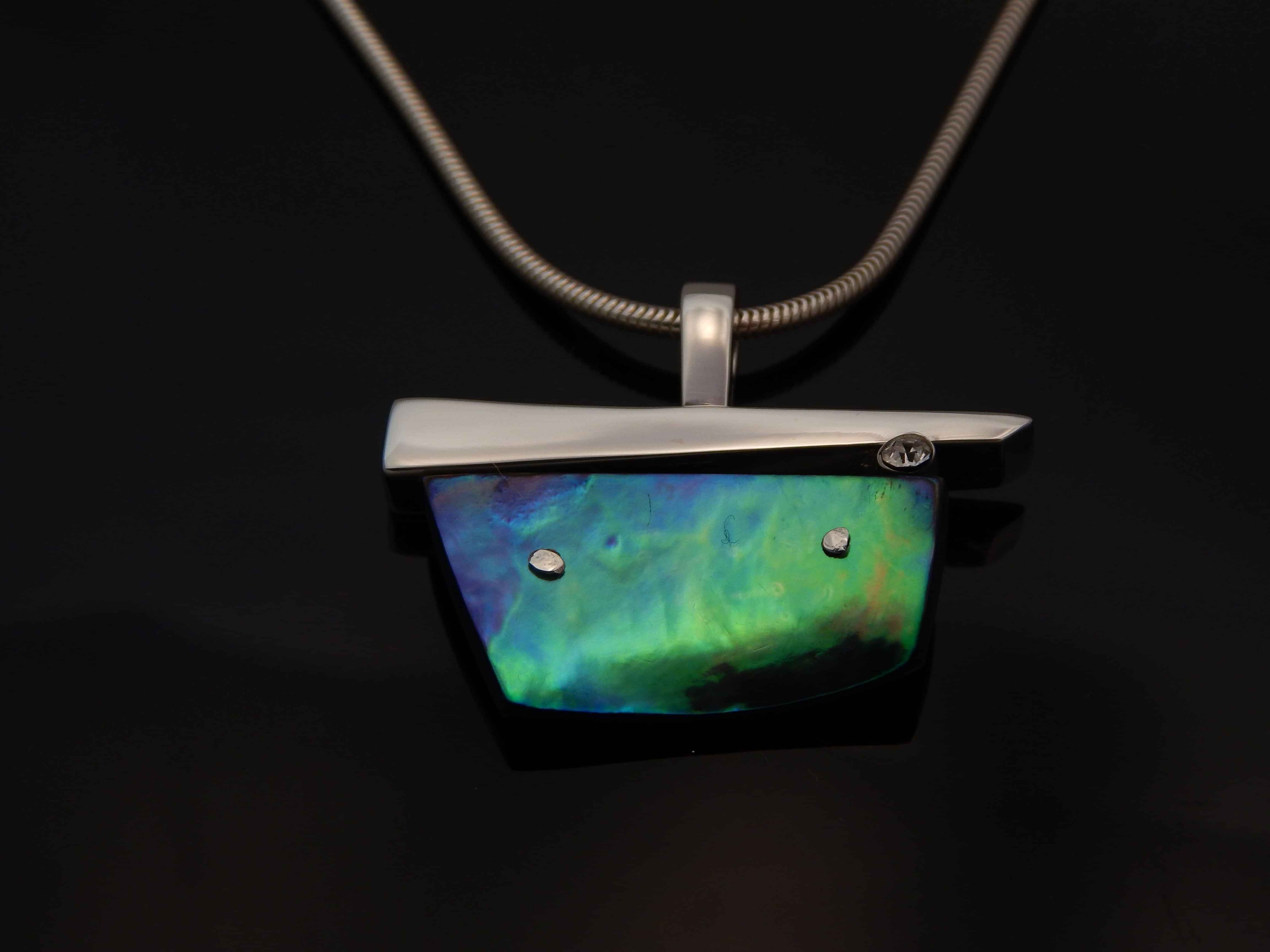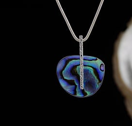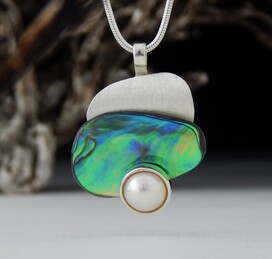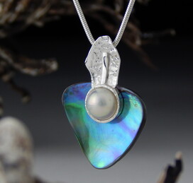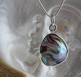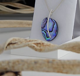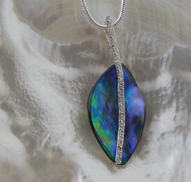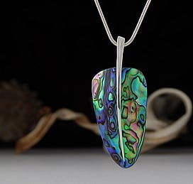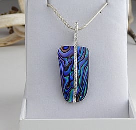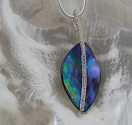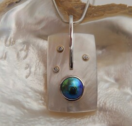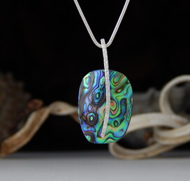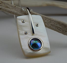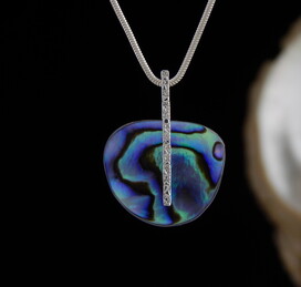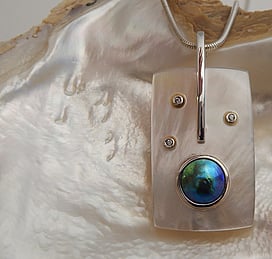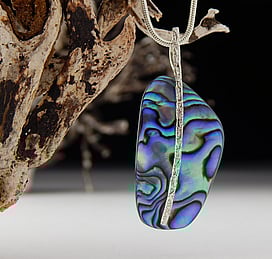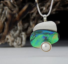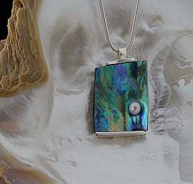 Michel works with natural marine materials such as Paua Shell and Mother of Pearl, and cultured Pearls. These materials have a beautiful iridescent colour palette which he celebrates in his work.