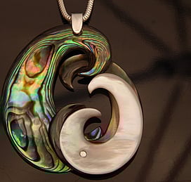A childhood interest in archaeology led him to develop knowledge and understanding of the material culture of Aotearoa New Zealand, and he continues the tradition of working local materials such as stone and shell in jewellery and occasionally sculpture.