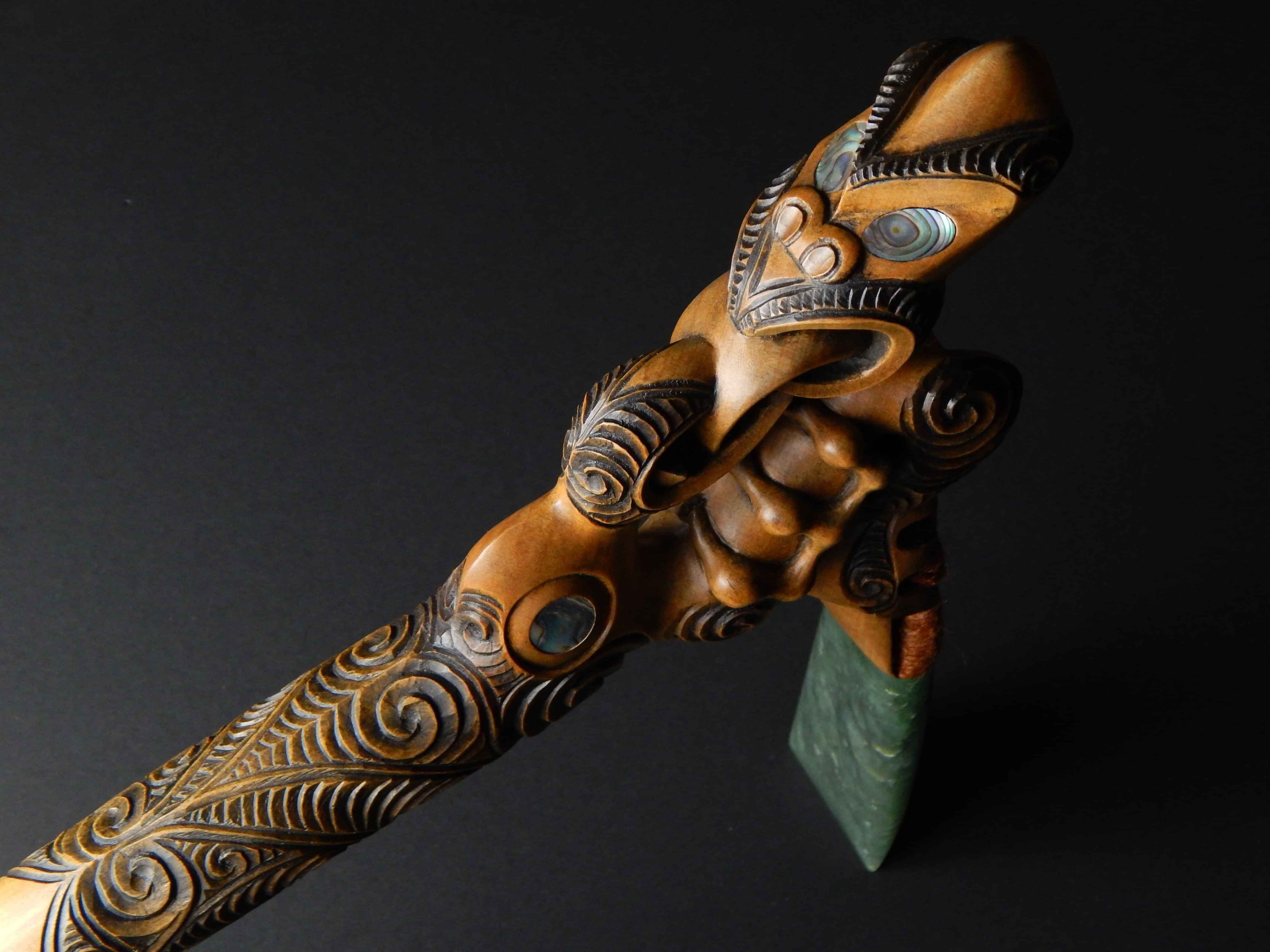 Kauri timber for carving was carefully selected and stored, although he also worked in other native New Zealand timbers.