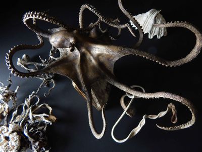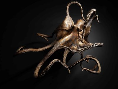 Made using the 'lost wax' process. The Octopus was cast in many individual parts, then assembled by carefully welding these components together.