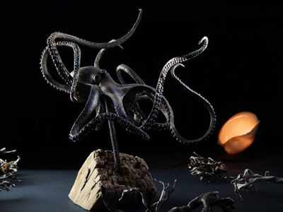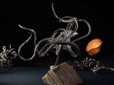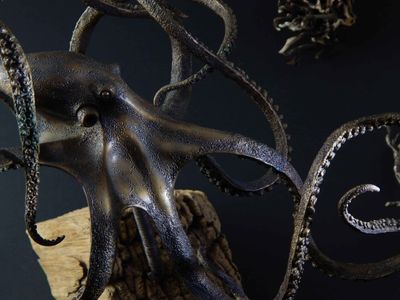 Made using the 'lost wax' casting process. The complicated form of the Octopus was cast in many individual parts, then assembled by carefully welding these components together to achieve a seamless lifelike finish.