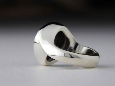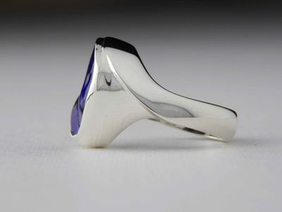 Boulder Opal ring designed and hand made in Auckland for Gallery Pacific. Featuring free form Queensland Boulder Opal gemstone 11.3 carats, 16.5 x 14.5mm. Sterling silver mount. Size S (US9.5).