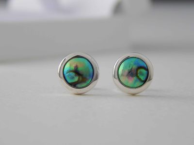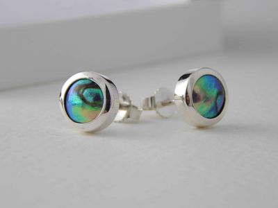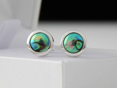New Zealand Blue Pearl earrings designed and made in Auckland exclusively for Gallery Pacific. Featuring 8mm diameter pearls. Sterling silver mounts.