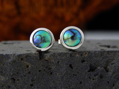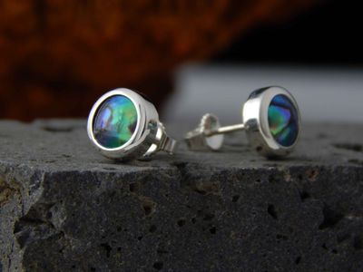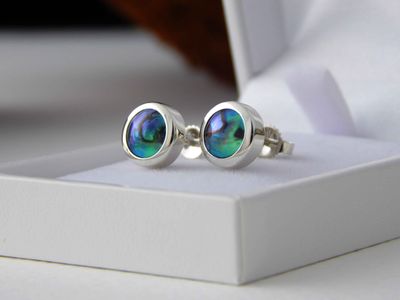 New Zealand Blue Pearl earrings designed and made in Auckland exclusively for Gallery Pacific. Featuring 8mm diameter pearls. Sterling silver mounts.